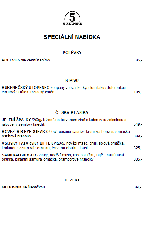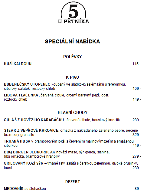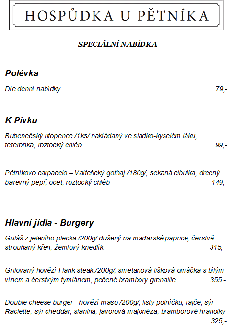 Vítáme Vás na webových stránkách restaurace U Pětníka.